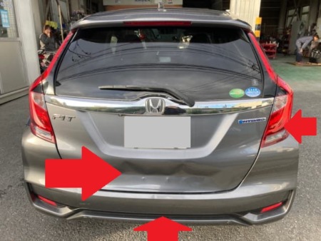 ▼ リアゲートとリアバンパー、テールランプを破損してしまってしょんぼりして来られました。