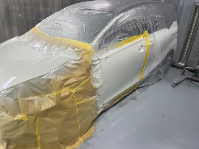 塗装面以外を塗料の飛散による汚れを防止する為に、専用のビニールシートでマスキングをしてから塗装を実施します。