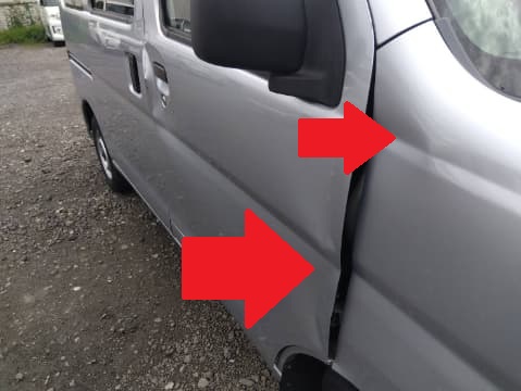 ▼ 車の右側面のフロントフェンダーからフロントドアにかけての損傷です。