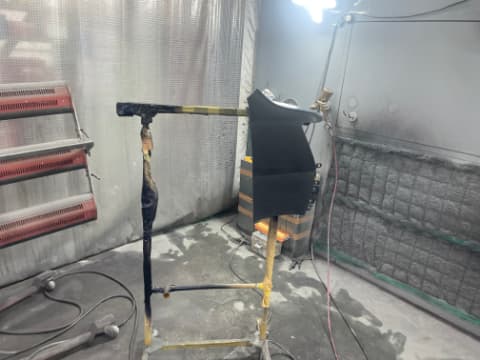 ▼ フロントピラーの傷も直して、車を塗装専用ブースに移動して塗装をします。